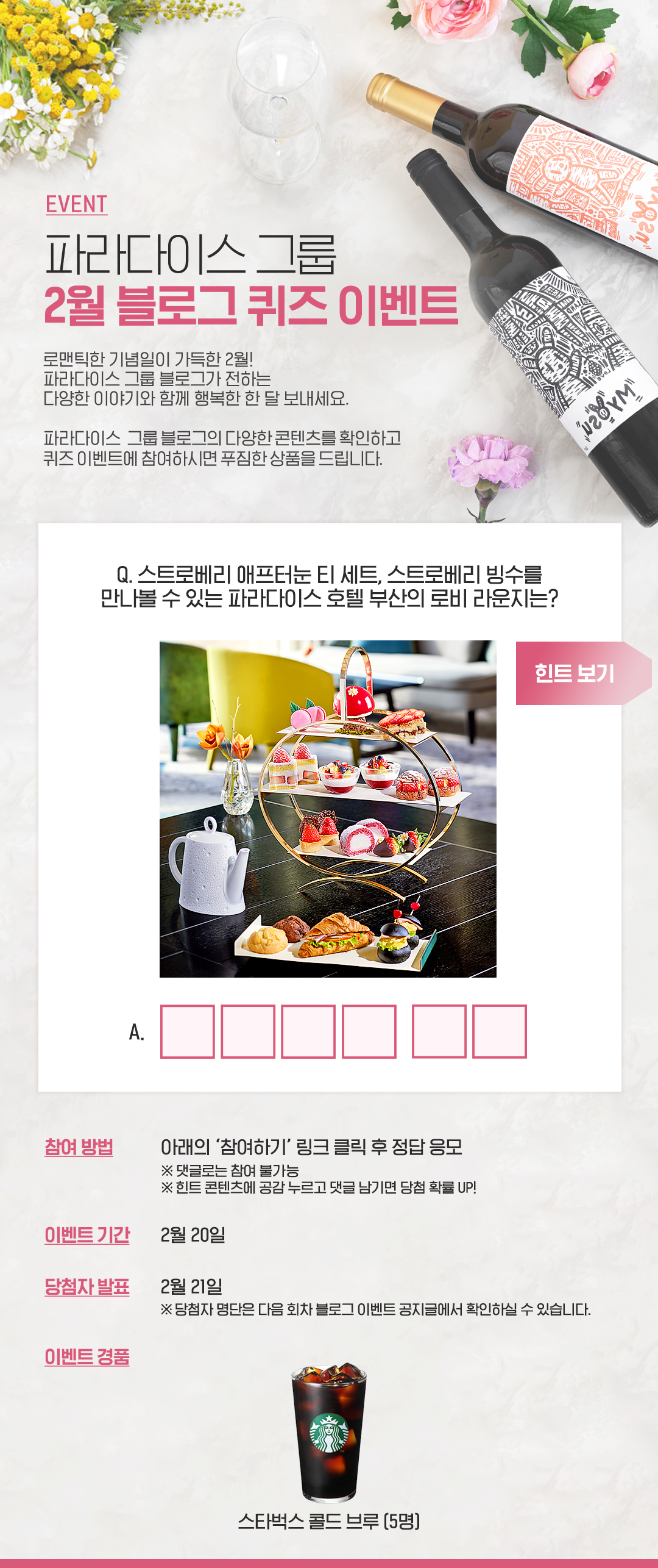 | 파라다이스 그룹 2월 블로그 이벤트 (2회차) & 1회차 당첨자 발표 (41) | 2023.02.21 |