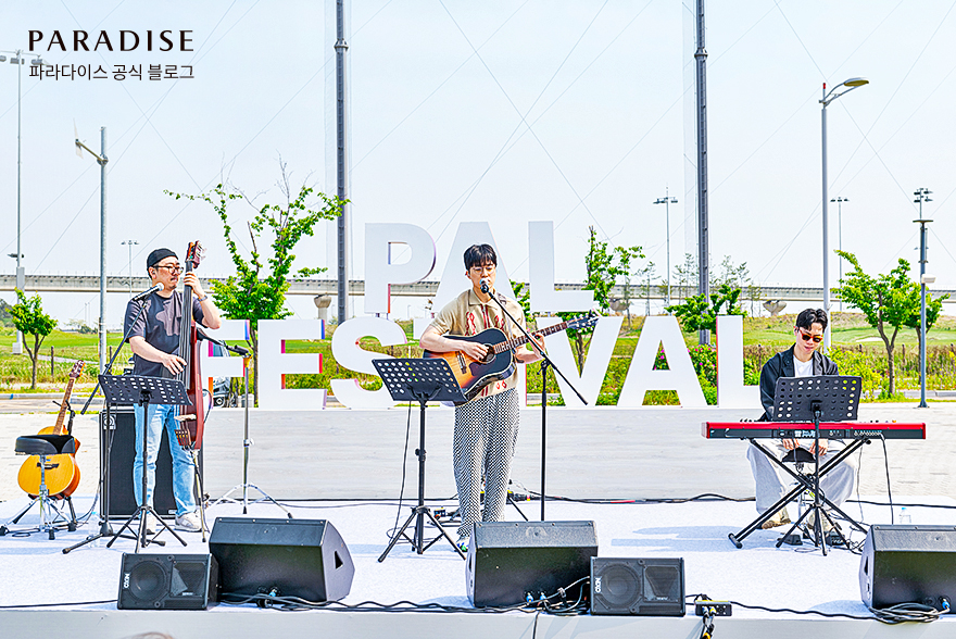 파라다이스 아트랩 페스티벌은 예술 작품 전시 외에도 다양한 프로그램을 함께 선보이는데요. 2022년에는 잔디밭에서 즐기는 낭만적인 뮤지션의 음악 버스킹, 아티스트와의 토크 프로그램 등을 진행해 활기찬 예술 축제의 분위기를 고조시켰습니다. 더불어 어린이 관객도 함께 즐길 수 있는 키즈 프로그램, 스탬프 투어 등의 이벤트로 누구나 참여할 수 있는 축제를 만들었죠. 이처럼 다채로운 볼거리와 놀거리로 가득 채운 2022년의 파라다이스 아트랩 페스티벌은 3만여 명의 관객이 방문하며 성공리에 막을 내렸습니다.