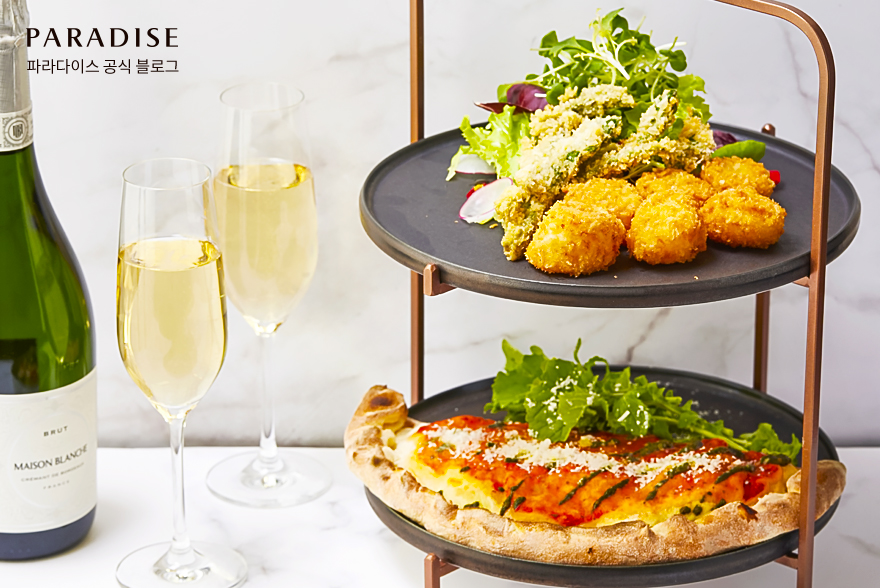 파라다이스 호텔 부산 라 스칼라에서는 따스한 봄을 맞이하여 스프링 세트 메뉴를 선보입니다. 스프링 세트는 산뜻한 봄나물 페스토를 곁들인 정통 봉골레 파스타와 루꼴라 깔조네 피자, 두릅&가리비 튀김 샐러드, 총 3가지의 메뉴로 구성되어 있는데요. 수준 높은 음식과 페어링 할 수 있는 스파클링 와인 2잔도 함께 제공됩니다. 파라다이스 호텔 부산 라 스칼라의 스프링 세트를 통해 이탈리아 봄의 미식을 즐겨보세요.