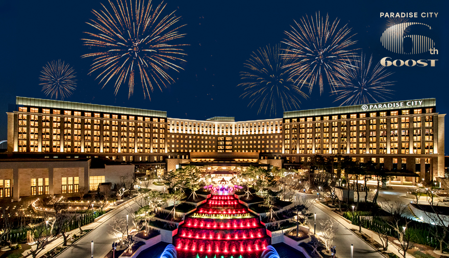 2017년 4월 20일, 인천 영종도에 문을 연 아트테인먼트 복합 리조트 파라다이스시티가 올해로 6주년을 맞이했습니다! 파라다이스시티는 그동안 아낌없는 성원을 보내준 고객 여러분에게 보답하고자 개관 6주년 기념 축제의 장을 마련했는데요. 올 봄을 더욱 활기차게 보낼 수 있도록 일상에 에너지를 북돋아줄 에너지 부스트 대축제, ‘6oost 페스티벌’이 펼쳐집니다. 6주년 상징으로 가득 채운 객실 패키지부터, 리워즈 이벤트, 부대시설 프로모션 등 다양한 이벤트와 즐길거리가 준비되어 있는데요. 지금부터 자세히 알아볼까요?