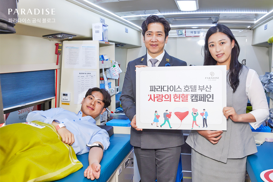 파라다이스 그룹의 각 사업장들은 헌혈 캠페인을 통해 헌혈의 가치를 알리고 실천을 독려해왔는데요. 이번 ‘생명나눔 사랑의 헌혈’ 캠페인은 파라다이스 호텔과 대한적십자사 부산혈액원이 함께 했습니다.