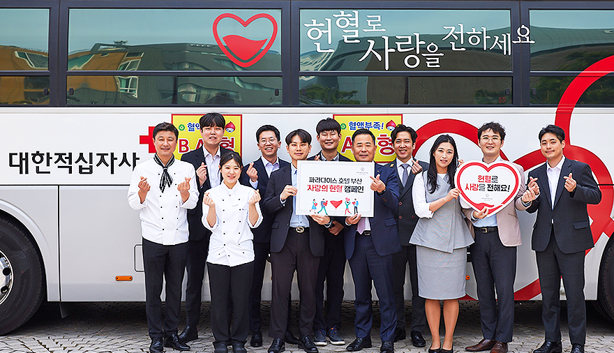 지금까지 파라다이스 호텔 부산의 ‘생명나눔 사랑의 헌혈’ 캠페인 소식을 전해드렸습니다. 파라다이스 그룹의 각 사업장은 지역사회와의 상생을 도모하고, 더불어 살아가는 사회를 만들고자 다방면으로 노력하고 있는데요. 이웃과 어려움을 함께 나누고, 더불어 살아가는 미래를 위해 앞으로 파라다이스 그룹이 전개할 다양한 활동에 많은 관심과 응원 부탁드립니다.