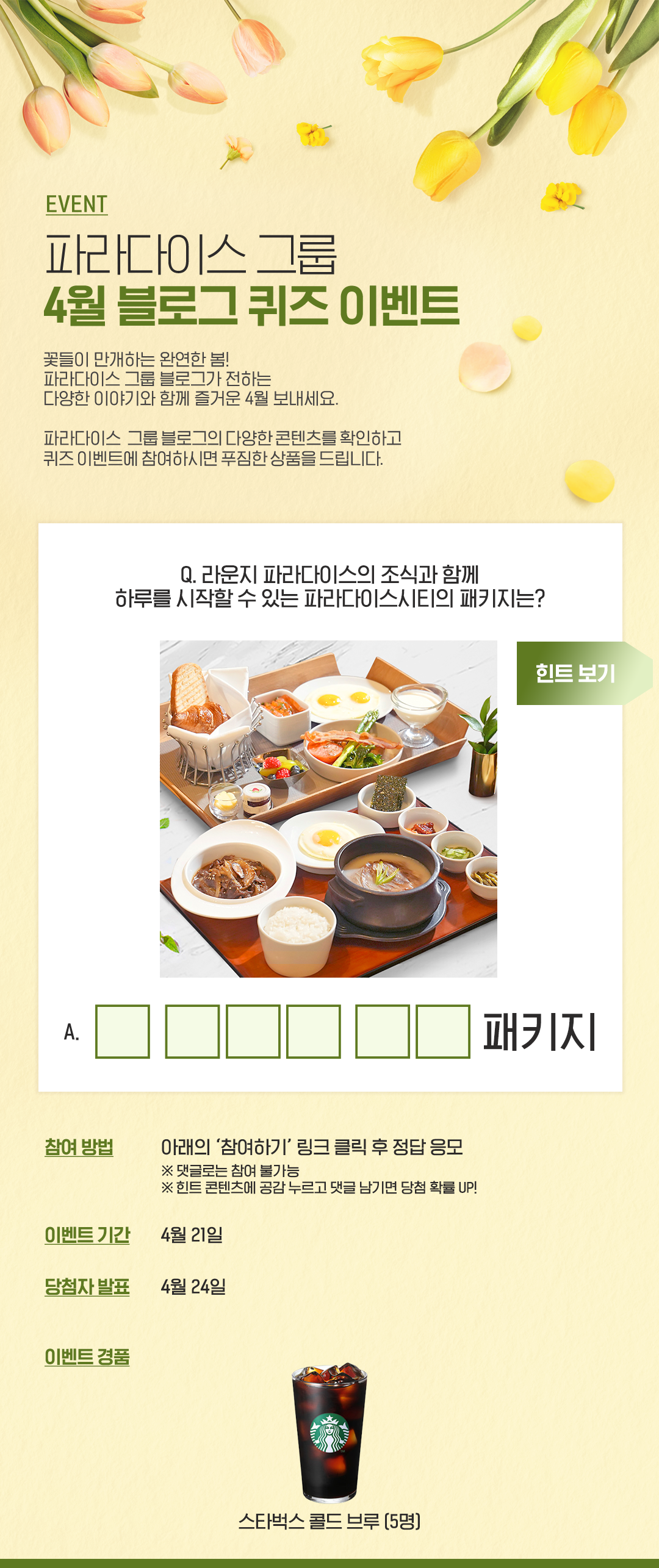 파라다이스 그룹 4월 블로그 이벤트