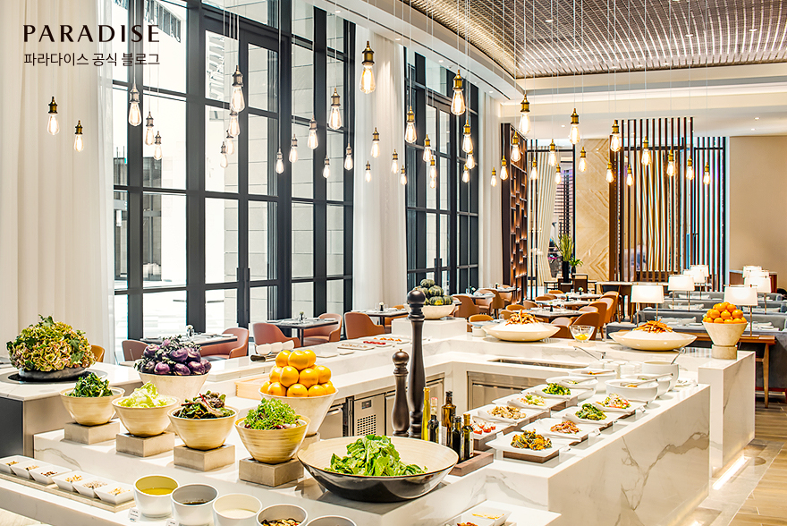 파라다이스 호텔 부산의 호텔 특가 혜택을 담은 슈퍼위크 패키지는 기간에 따라 1박 A타입과 2박 B타입 중 원하는 유형을 선택할 수 있는데요. 두 타입 모두 파라다이스 호텔 부산의 디럭스 객실 이용과 더불어 해운대 오션뷰를 감상할 수 있는 온 더 플레이트에서 품격 있는 호텔 조식을 즐길 수 있습니다. 멋진 경치를 배경으로 마스터 셰프들이 엄선한 최상급 제철 식재료를 이용해 오픈 키친에서 갓 조리되는 음식들을 만끽해 보세요.