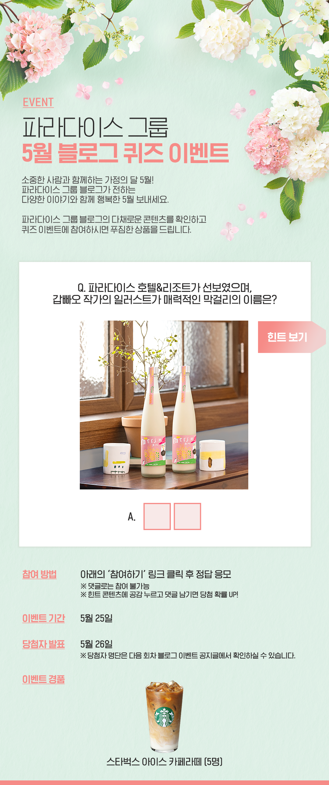 파라다이스 그룹 5월 블로그 이벤트 (4회차) & 3회차 당첨자 발표