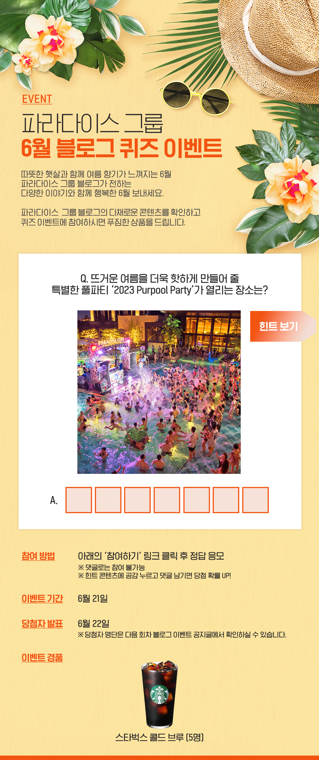 | 파라다이스 그룹 6월 블로그 이벤트 (1회차) (48) | 2023.06.19 |