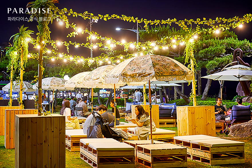 다음으로 오직 6~8월에만 만날 수 있는 파라다이스 호텔 부산의 특별한 공간을 소개합니다. 여름에 가볼 만한 곳으로 추천하는 더 비치 라운지는 해운대 바다 앞에 위치한 야외 정원인데요. 자연 그대로의 아름다움을 간직한 낭만적인 공간에서 낮과 밤, 다른 매력을 느끼며 힐링의 시간을 가질 수 있습니다.