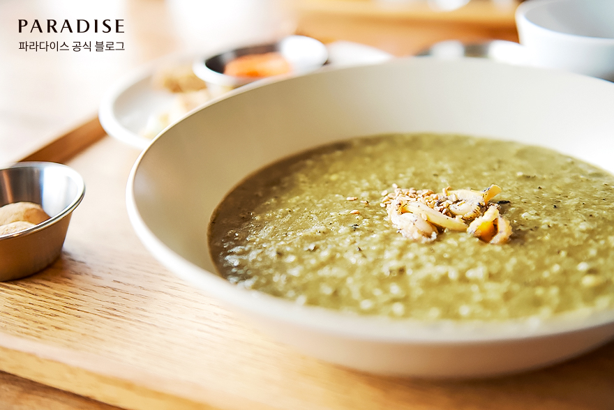 다음으로 살펴볼 여름에 먹기 좋은 복날음식은 전복죽입니다. 전복죽은 고소하고 뽀얀 국물과 쫄깃쫄깃하게 씹히는 전복살이 어우러져 맛과 식감 모두 뛰어난 보양 별미입니다. 특히 전복죽의 핵심인 초록빛의 내장은 깊은 향과 함께 음식에 풍부한 맛과 영양을 더하는데요. 전복죽은 필요한 재료는 간단하지만 맛과 영양이 풍부해 죽의 황제라고 불립니다.