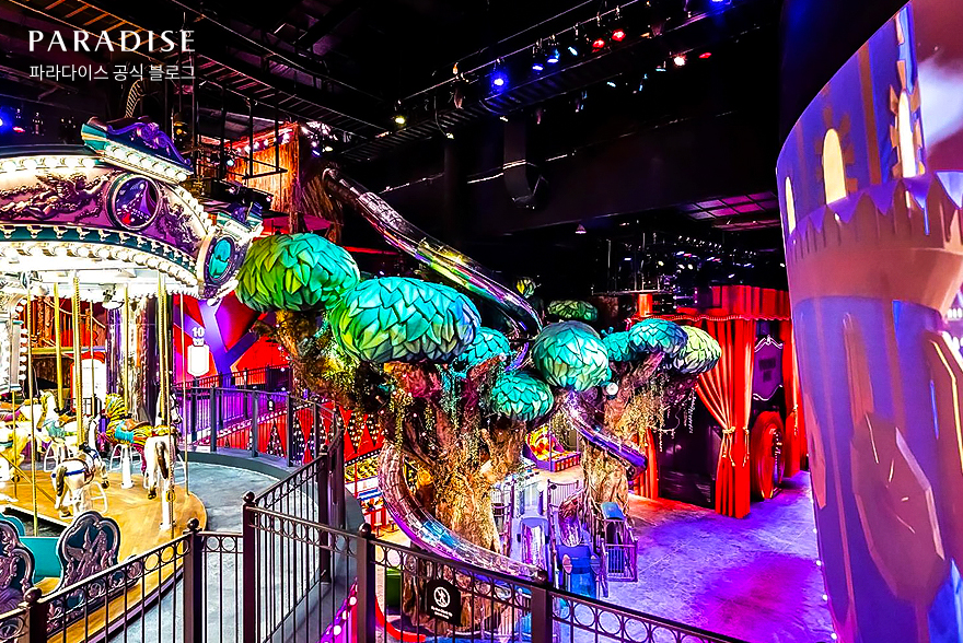 파라다이스시티에서 조금 더 특별한 추억을 남기고 싶다면 원더박스에 방문하는 것을 추천합니다. 환상의 세계로 입장하는 문이 열리면 다양한 빛깔로 빛나는 불빛과 함께 동심의 세계가 시작되는데요. 해피스윙, 메가믹스와 같은 스릴 넘치는 놀이기구는 잊지 못할 짜릿한 순간을, 회전목마, 관람차 등 잔잔한 놀이기구는 낭만적인 순간을 만들어 줍니다. 오직 원더박스에서만 볼 수 있는 수준급 퍼포먼스와 화려한 연출이 돋보이는 매직쇼와 마리오네트 퍼포먼스도 놓치지 마세요!