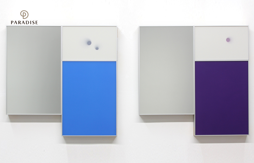 첫번째 층에서는 장승택과 이세현 작가의 작품을 만날 수 있습니다. 국내 추상회화를 선도하는 작가 중 한 명인 장승택 작가는 알루미늄 프레임, 강화유리, 폴리에스테르 필름 등 공업용 재료에 페인팅을 결합시킨 작품을 선보입니다. 이러한 작업을 통해 물질에 대한 탐구를 이어오고 있는데요. 파라다이스에 전시된 <Untitled-Transpainting> 역시 캔버스와 붓을 사용하는 전통적 회화의 틀에서 벗어난 새로운 방식의 회화 작품입니다. 작품 제목의 ‘Transpainting’은 유리라는 투명한(transparent) 재료에, 단위 작품들을 조합해 회화 형태를 변형(translate)한 방법을 결합했다는 의미를 담고 있습니다.