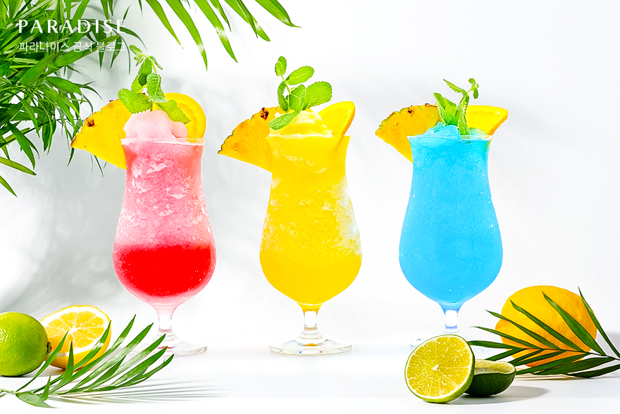 라운지 파라다이스에서는 ‘Pink Paradise’와 같은 시그니처 칵테일부터 다양한 종류의 하이볼, 논알콜 음료를 즐길 수 있는데요. 이번 여름에는 더위를 날려줄 청량한 탄산이 가득한 음료 3종을 새롭게 선보였습니다.