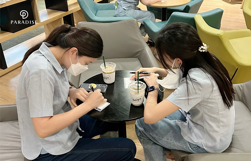 파라다이스 카지노 부산에 특별한 ‘일일 카페’가 열렸습니다. 8월 12일, 일본 연휴 대목을 앞두고 바쁜 업무와 더위에 지친 임직원들을 응원하기 위해 사내 이벤트가 마련된 것인데요. 교대 근무 출퇴근 시간에 맞춰 향긋한 커피와 달콤한 음료, 든든한 스콘과 머핀을 준비해 직원들에게 달달한 에너지를 전했습니다.