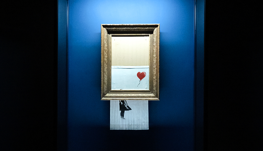 ‘Love In Paradise: Banksy & Keith Haring’展에서 마지막으로 소개할 뱅크시의 작품은 너무나도 유명한 <Girl without Balloon, 풍선 없는 소녀(2021)>인데요. <Girl without Balloon, 풍선 없는 소녀(2021)>는 소더비 경매에서 낙찰되자마자 작품의 반이 파쇄된 스토리로 유명해진 작품입니다.