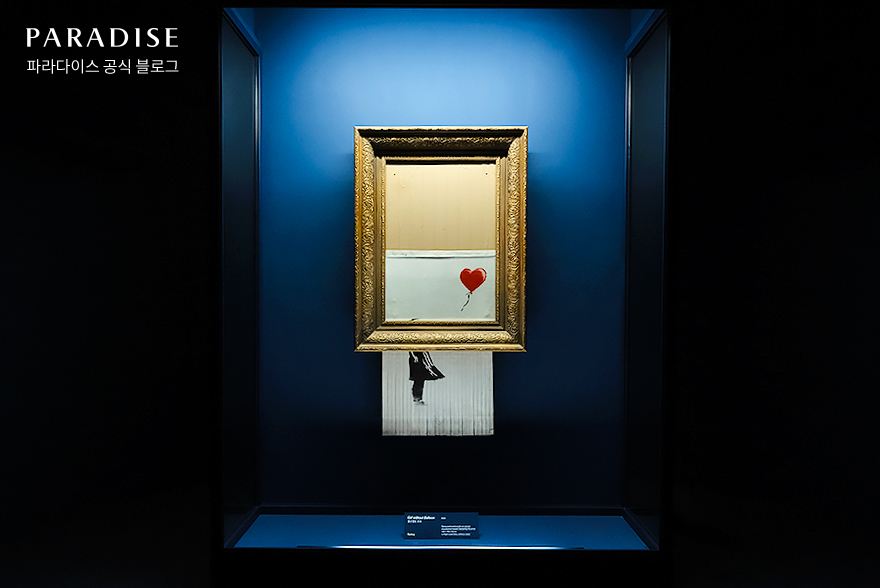 특히 이번 전시는 국내에서 쉽게 접할 수 없었던 작품들을 볼 수 있다는 점에서 화제가 되었는데요. 파라다이스시티가 세계 최대 미술작품 경매회사인 소더비와 협력하여 뱅크시의 대표 작품인 <Girl without Balloon, 풍선 없는 소녀 (2021)>를 포함해 총 32점의 작품을 선보입니다.