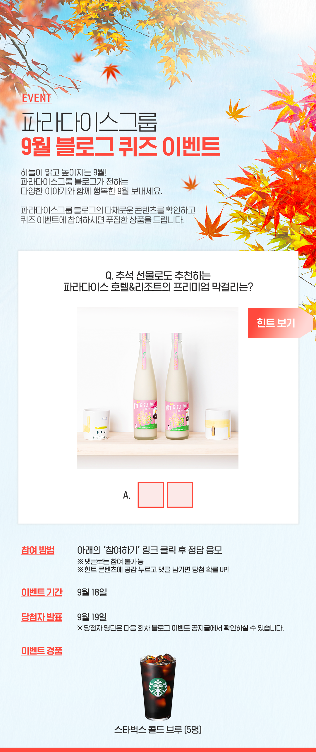 파라다이스그룹 9월 블로그 이벤트