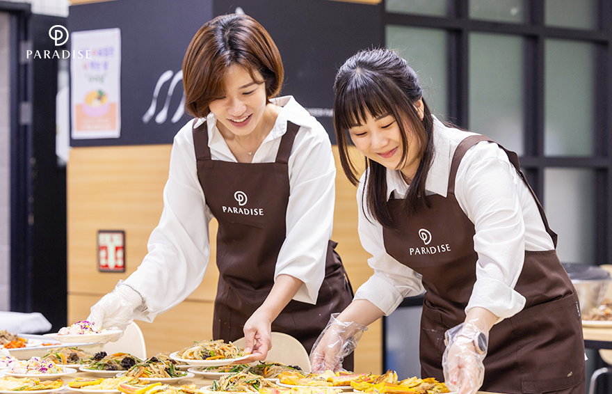 지난 9월 22일, 서울 중구의 유락종합사회복지관에서 ‘효(孝)드림’의 아침이 밝았습니다. 어르신들을 생각하며 모두가 한 마음 한 뜻으로 소매를 걷어붙였죠. 파라디안들은 앞치마를 매고 테이블 세팅은 물론 동태전, 산적, 호박전 등 어르신들께 대접할 명절 음식을 만들었습니다. 이번 명절부터는 어르신들을 직접 뵙고 마음을 전할 수 있어 파라디안들의 얼굴에는 설렘이 가득 담겨 있었습니다.