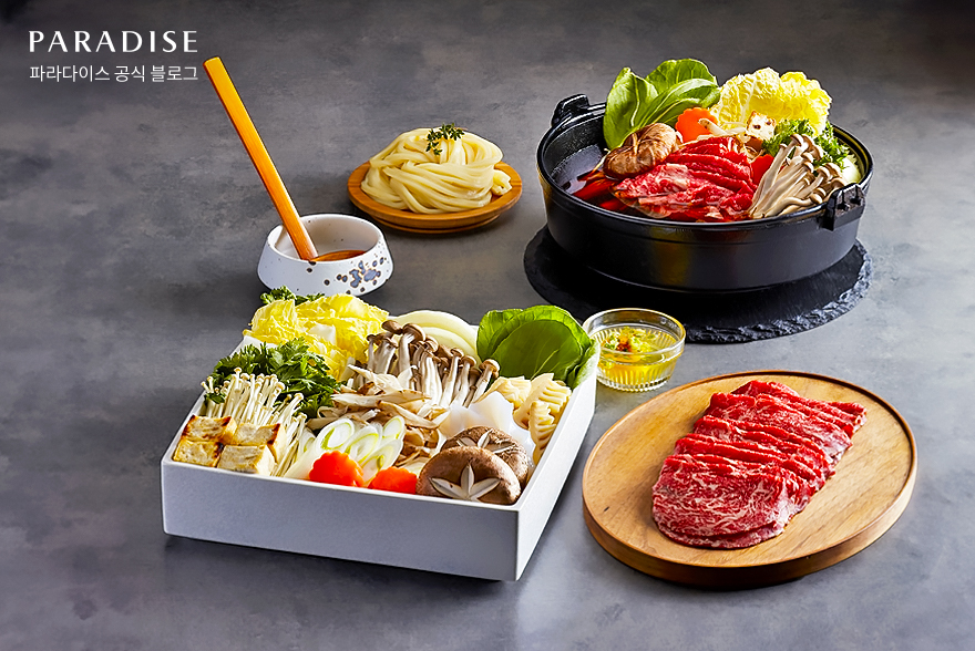 한편, 요즘과 같이 바람이 선선하게 불어오는 가을에는 몸을 따뜻하게 데워줄 요리가 생각나는데요. 이번 가을 파라다이스 호텔 부산 사까에에 방문할 예정이라면 ‘한우 스키야키’를 선택해 보는 것을 추천합니다. 다양한 종류의 가을 제철 버섯과 최상급 품질을 자랑하는 한우가 그릇에 정갈하게 담겨 나오는데요. 즉석에서 조리해 따뜻하게 달궈진 ‘한우 스키야키’로 건강하면서도 몸과 마음이 포근해지는 기분을 경험할 수 있습니다.