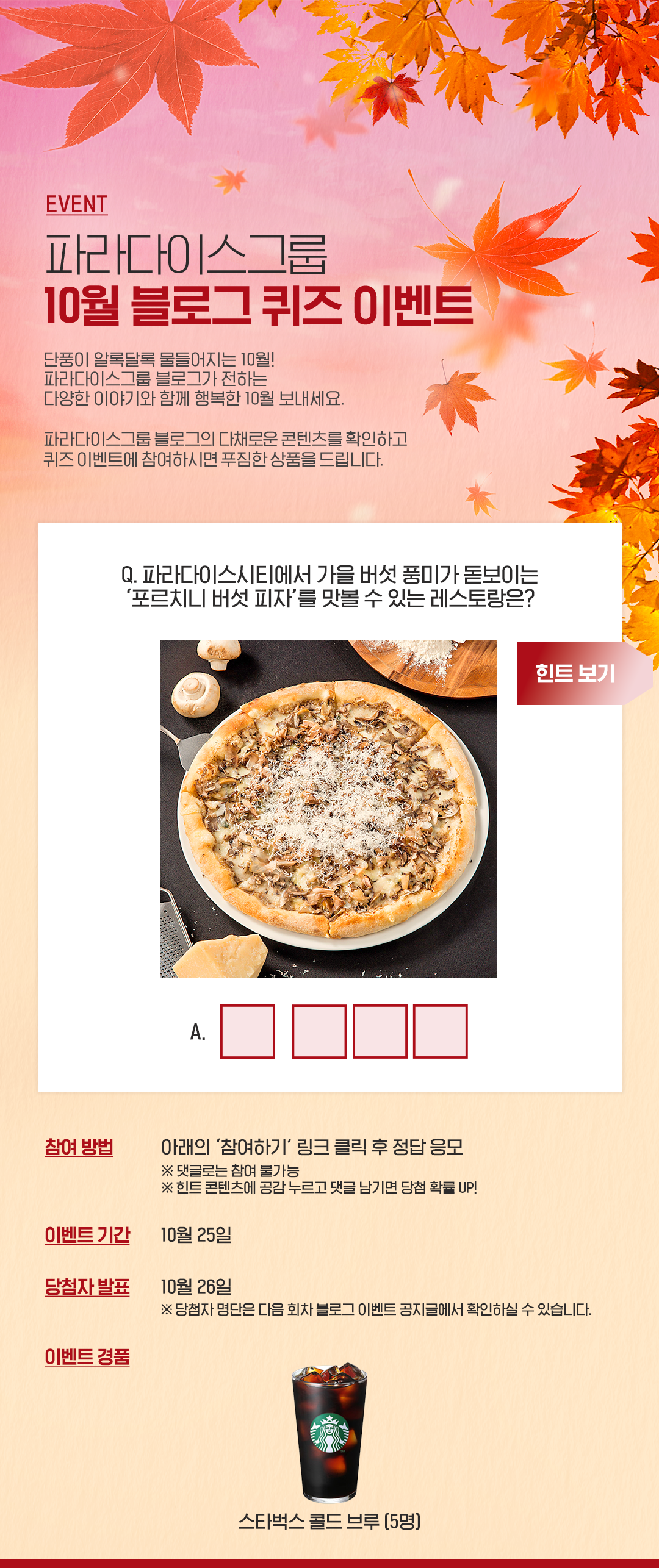 파라다이스그룹 10월 블로그 이벤트 (3회차) & 2회차 당첨자 발표