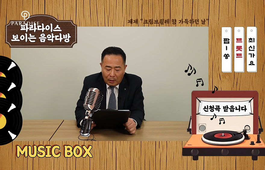 마지막으로 모든 임직원이 기다렸던 추억의 음악 다방을 만났습니다. 일일 DJ로 변신한 11명의 리더들이 신청된 사연을 읽어주고, 음악을 틀어주는 보이는 라디오 영상이 제작되었는데요. 갓 입사한 신입의 귀여운 실수부터 힘든 순간 진심으로 위로해준 동료들, 외로운 순간 힘이 되어주어 감사했던 선배를 향한 비밀 편지까지! 직접 신청한 사연들로 꾸며진 음악 다방에서 서로에 대한 배려과 존중을 바탕으로 협력해 나가는 파라다이스 호텔 부산 임직원들의 진정한 휴먼터치를 느낄 수 있는 시간이었습니다.