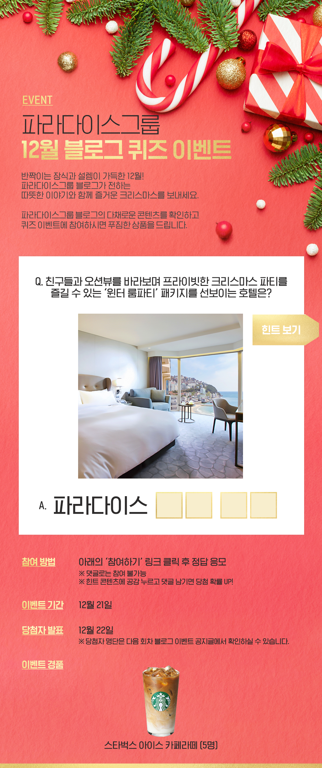 | 파라다이스그룹 12월 블로그 이벤트 (1회차) (36) | 2023.12.18 |