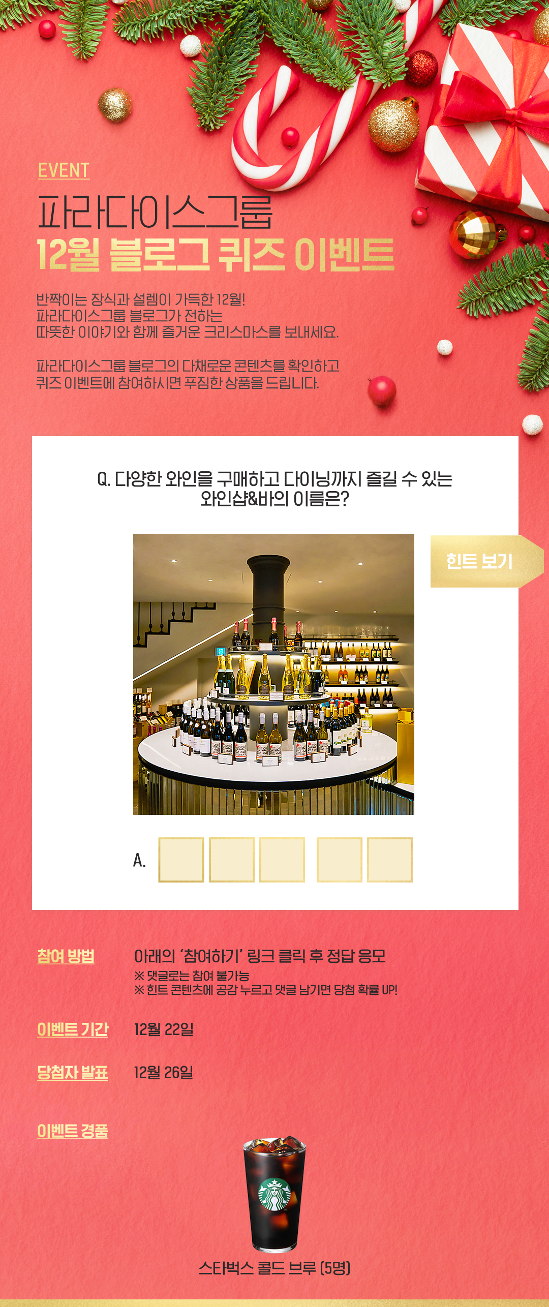 파라다이스그룹 12월 블로그 이벤트 5회차 당첨자 발표 (0) | 2023.12.26 |