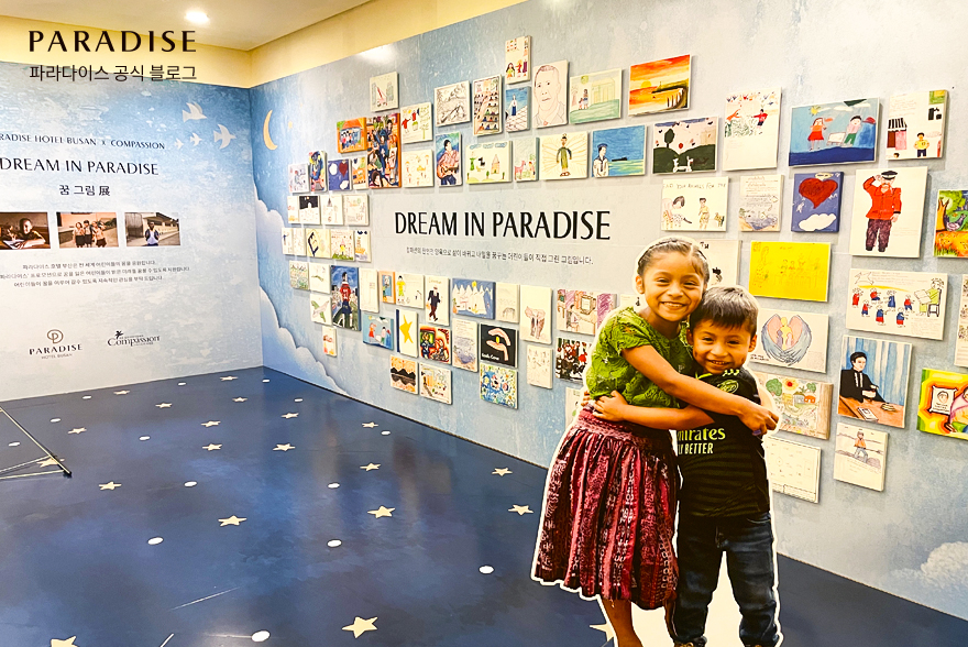객실 패키지 외에도 현재 파라다이스 호텔 부산에서는 컴패션의 어린이들이 ‘꿈’을 주제로 그린 그림이 전시되고 있습니다. 아이들이 꿈꾸는 미래가 담긴 전시를 잠시 감상하며 따뜻하게 한 해를 마무리 지어보세요.