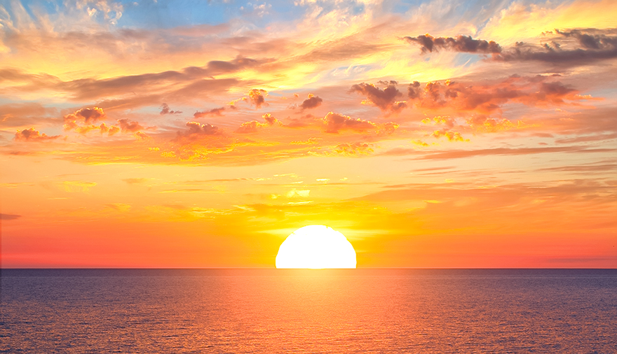 끝없이 펼쳐진 겨울 바다 위로 태양이 떠오르는 정동진 일출