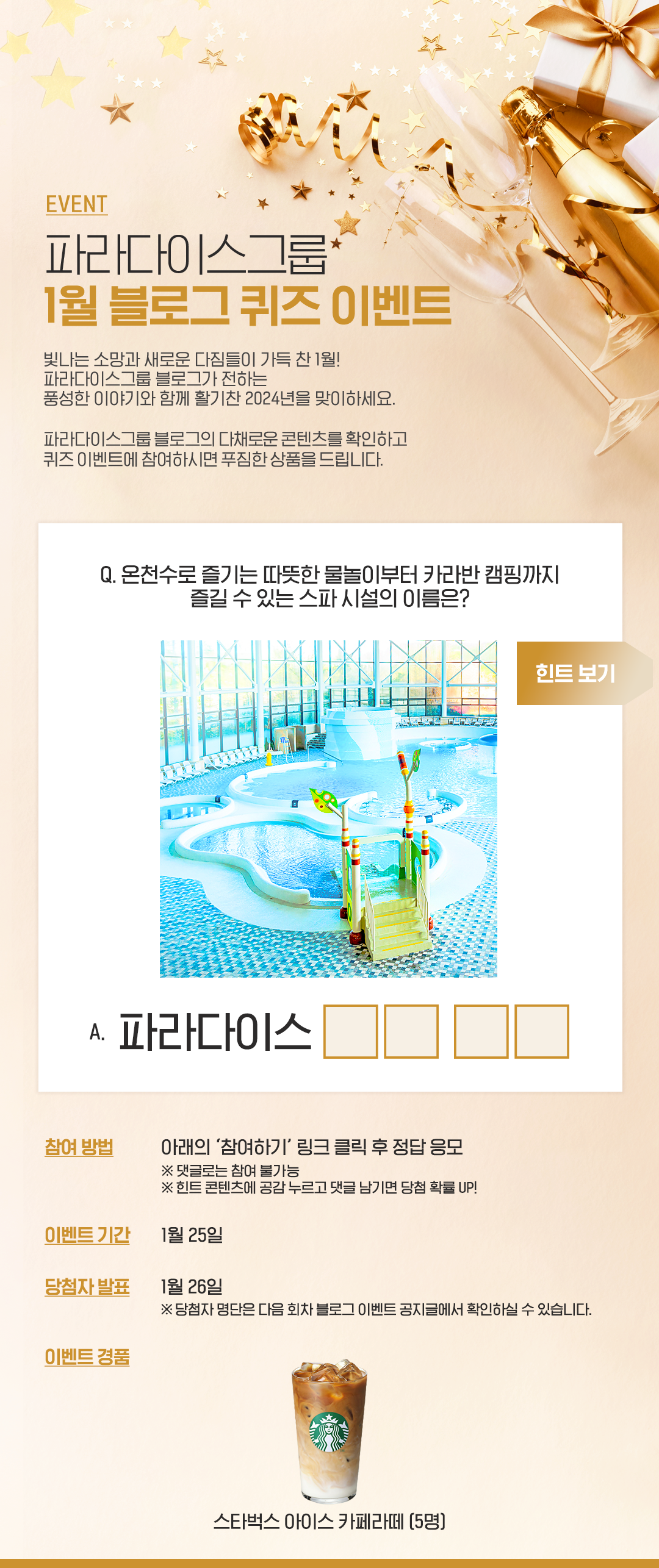 | 파라다이스그룹 1월 블로그 이벤트 (1회차) (61) | 2024.01.22 |
