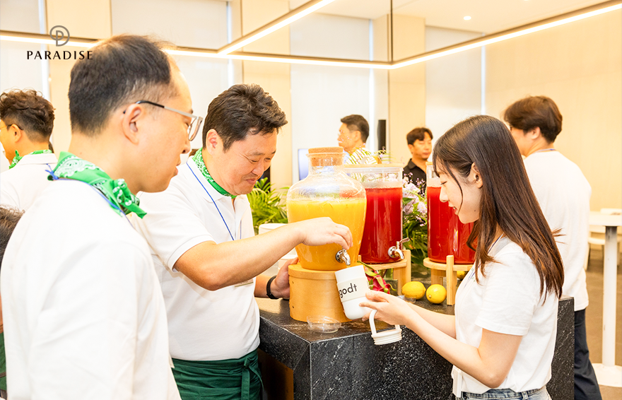 지난해 7월에는 그룹 창립 51주년을 기념해 서울 퇴계로 사옥에서 친환경 캠페인 & 활동을 접목한 ‘그린 파라다이스’ 행사를 열었는데요. 일상 속 지구를 위한 작은 실천을 펼치는 캠페인과 함께 에코 비누바 만들기, 비건 만찬 등 임직원들이 하룻동안 다양한 제로웨이스트를 체험하며 친환경 활동의 중요성을 환기하는 시간을 가졌습니다. ‘그린 파라다이스’를 기점으로 파라다이스는 앞으로 더 적극적인 ESG 경영을 전개해 나갈 예정이니 많은 관심 부탁드립니다.