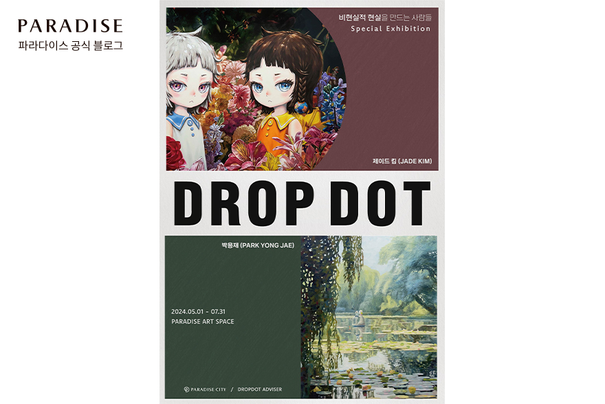 파라다이스시티 아트스페이스에서 신규 전시 ’DROPDOT Special exhibition: 비현실적 현실을 만드는 사람’이 개최합니다. 제이드 킴(Jade Kim) 작가와 박용재 작가가 참여하는 이번 전시에서는 소설이나 게임, 만화에서만 보던 판타지 속 세상을 경험할 수 있는 작품들을 만날 수 있는데요. 제이드 킴 작가는 비현실적인 공간에서 아내의 어린 시절을 캐릭터화 한 ‘MIN’을, 박용재 작가는 현실적인 공간에서 작가 본인을 투영한 비현실적 캐릭터인 ‘REM’을 작품에 담아낼 예정입니다. 예술적 영감을 선사하는 ’DROPDOT Special exhibition: 비현실적 현실을 만드는 사람’ 전시는 5월 1일부터 7월 31일까지 무료로 진행될 예정입니다.