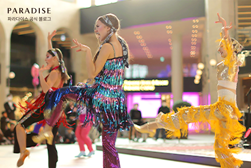 파라다이스시티에 방문한다면 유쾌한 분위기를 만끽할 수 있는 그리팅 공연도 빼놓을 수 없죠. 눈과 귀를 사로잡는 신기한 마술과 아찔한 서커스, 여기에 온 가족이 즐길 수 있는 댄스 타임까지 선보이는데요. 가정을 달을 맞아 주말 또는 공휴일에 파라다이스시티를 방문한다면, 해피 유랑단의 활기찬 공연을 놓치지 마세요!