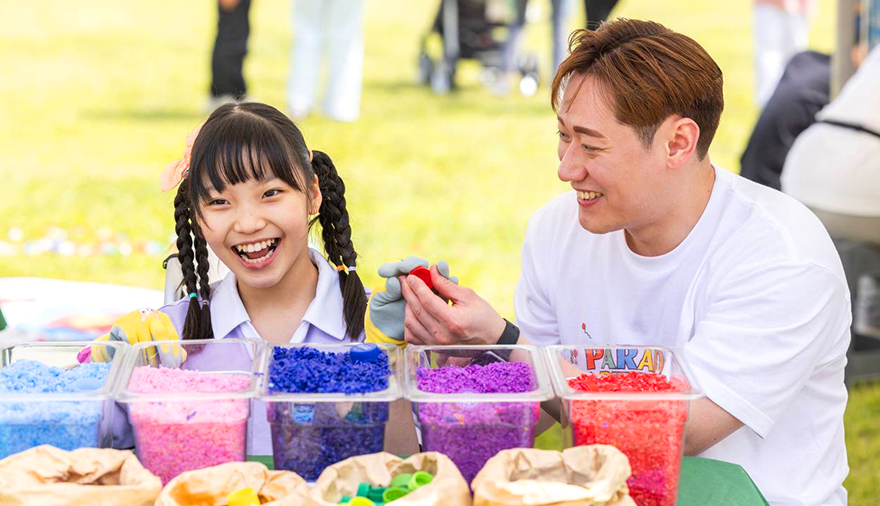 현장에서 각자의 방식으로 종이 인형을 색칠하고 꾸미는 아이들의 얼굴에는 미소가 떠나지 않았는데요. 계원예술대학교 학생 봉사자의 도움을 받아 개성 넘치는 종이인형으로 완성된 파라다이스시티의 모습은 축제에 참여한 모두를 하나로 연결해 주었습니다. 함께 협동하며 초대형 작품을 만들어 보는 이번 프로그램을 통해 참가자들은 장애와 비장애의 경계를 넘어 화합하는 뜻깊은 시간을 보냈습니다.