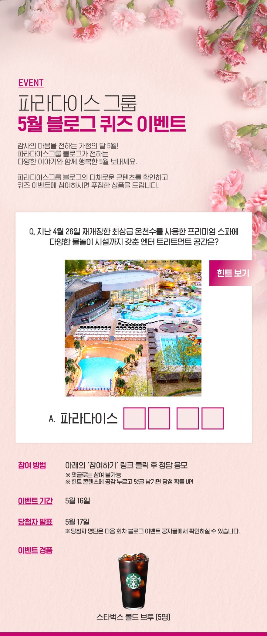 | 파라다이스그룹 5월 블로그 이벤트 (1회차) (28) | 2024.05.13 |