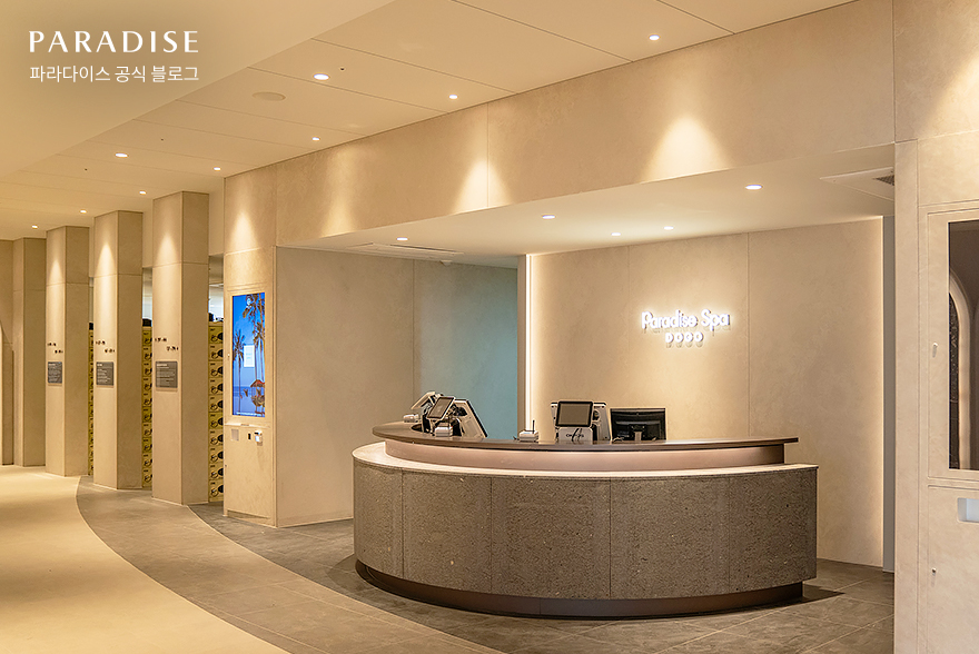 온 가족이 건강한 휴식을 즐길 수 있는 힐링 여행지 파라다이스 스파 도고에서 고객과 처음 마주하는 메인 로비가 한층 고급스러워진 모습으로 변화했습니다. 기존 원목 느낌의 우드 톤에서 화이트와 그레이 컬러로 바뀌었는데요. 이전보다 깔끔하고 모던해진 분위기가 느껴지지 않나요?