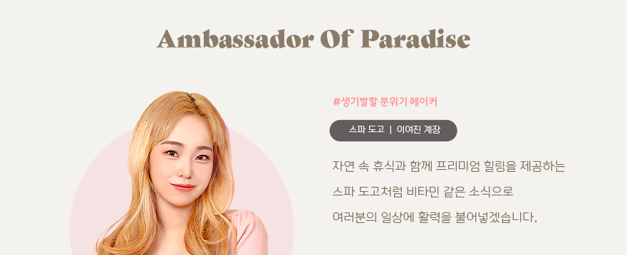 지금까지 메인 로비부터 푸드코트까지, 파라다이스 스파 도고의 구석구석을 함께 살펴보았는데요. 리뉴얼로 한층 더 업그레이드된 모습, 어떠셨나요? 즐거움이 두배가 된 파라다이스 스파 도고가 궁금하다면 충남 아산에서 만나요! 지금까지 스파 도고의 앰버서더 이여진이었습니다.