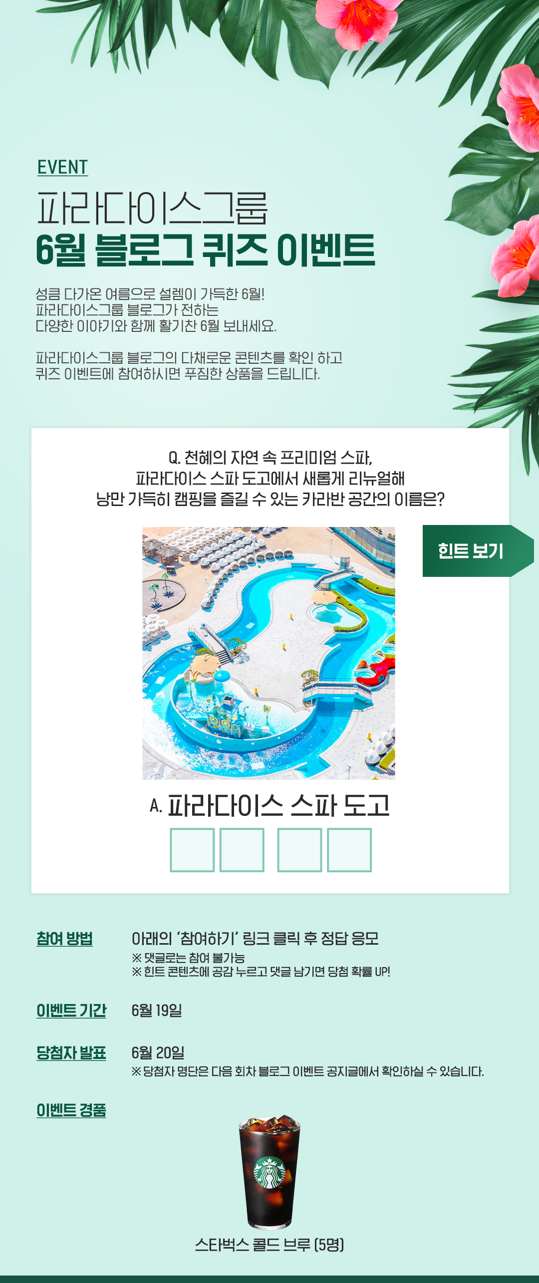 | 파라다이스그룹 6월 블로그 이벤트 (1회차) (44) | 2024.06.17 |