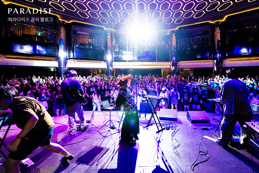 마지막 '크로마 스테이지'는 수준급 음향 장비를 갖춘 아시아 최대급 규모의 파티공간입니다. 크로마에서는 일렉트로닉 밴드 글렌체크, EDM 듀오 PIERRE BLANCHE 등의 액티비티한 공연을 제공하며 페스티벌의 저녁을 화려하게 장식했는데요, 심장을 울리는 강렬한 DJ의 비트가 5시간 동안 이어지며 관객과 함께 파라다이스시티에서의 밤을 온 몸으로 느끼는 무대가 수놓아졌습니다.
