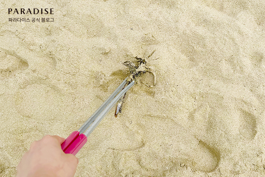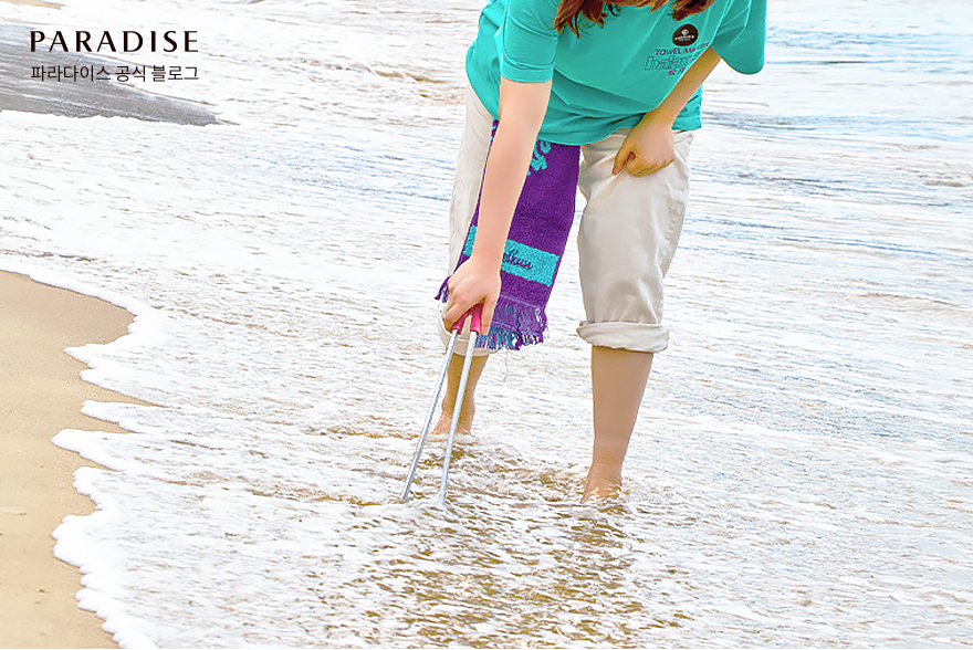파라다이스 호텔 부산과 송월이 함께한 비치코밍은 ‘Beach(해변)’와 ‘Combing(빗질하다)’의 합성인데요. 바닷가로 떠밀려온 표류물이나 해안에서 발생한 쓰레기 등을 빗질하듯 줍는 활동을 의미합니다. 플로깅, 줍깅 외에도 또다른 쓰레기 줍기 활동인 비치코밍의 의미와 의의를 알게 되었으니, 본격적으로 해운대 환경 정화 활동에 참여해 볼까요?