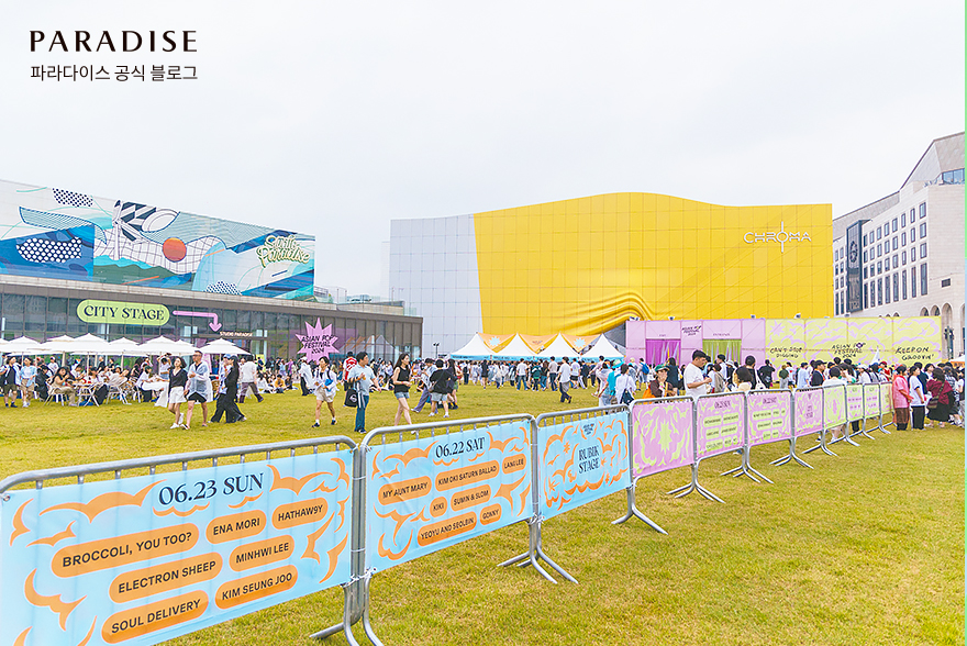 가슴을 울리는 비트소리에 이끌려 도착한 곳은 스튜디오 파라다이스였습니다. CITY STAGE에서는 싱어송라이터 ‘이진아’, 얼터너티브록 밴드 ‘봉제인간’, 신스팝 밴드 ‘아도이(ADOY)’ 등 탄탄한 마니아층을 확보하고 있는 뮤지션들의 무대가 한창이었는데요. 🎤