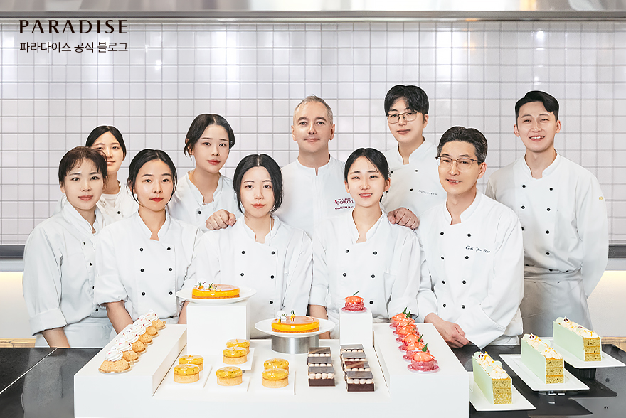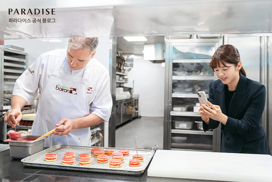 하나씩 맛볼 때마다 앞으로 파라다이스에서 선보일 디저트에 대한 기대가 높아졌는데요. 다가오는 7월, 가엘 에트리야르 셰프의 레시피를 접목한 베이커리 신제품이 출시된다고 하니 관심을 안 가질 수 없겠죠?🍰 파라다이스그룹 셰프들의 열정과 기술, 그리고 형형색색의 부와롱 퓨레가 만나 어떤 새로운 디저트가 탄생할지 모두 많.관.부! 🤗💛