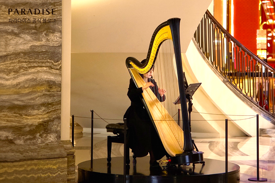 단조롭지 않고 생동감 있는 호캉스를 원하신다면, 파라다이스시티에서 진행하는 리조트 상설 공연에 방문하는 것을 추천합니다. 공간 곳곳에서 울려 퍼지는 아름다운 라이브 음악이 눈과 귀를 즐겁게 합니다. 하프, 피아노 연주와 버스킹 등 다양한 테마로 진행되는 공연은 파라다이스시티 다양한 장소에서 펼쳐집니다.