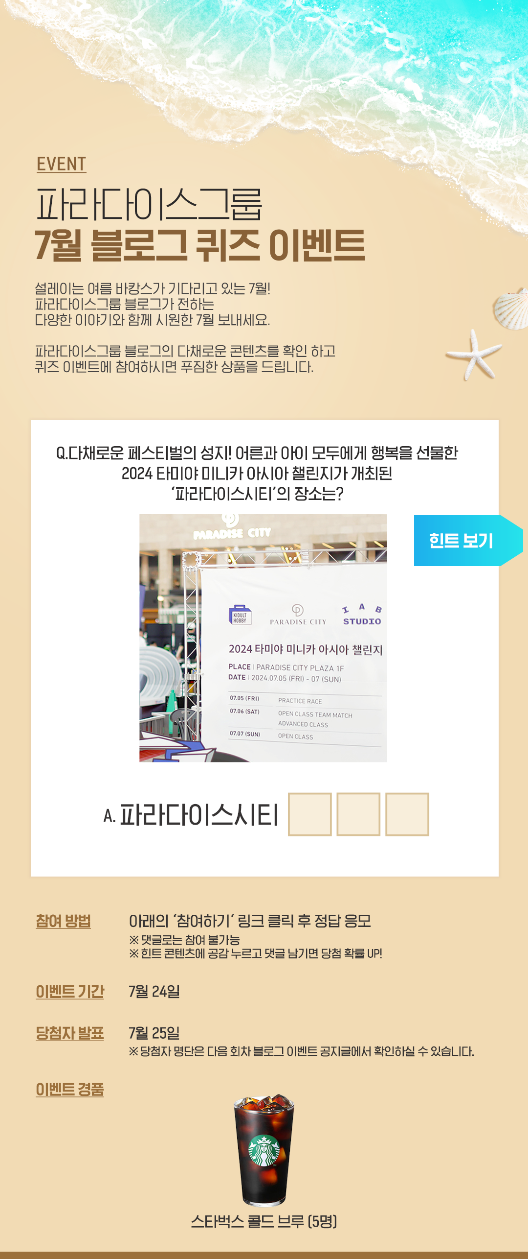 | 파라다이스그룹 7월 블로그 이벤트 (1회차) (50) | 2024.07.22 |