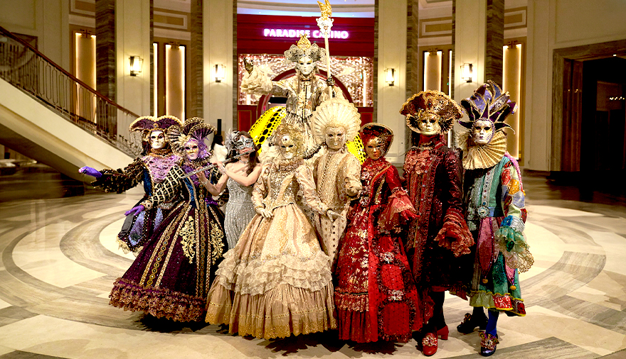 파라다이스시티 방문객들을 처음 반겨주는 것은 화려한 베네치아 마스크와 함께하는 가면무도회 ‘MYSTIC MASQUERADE’ 입니다. 아름다운 연미복을 입은 배우들의 우아한 왈츠는 황홀한 광경을 연출하는데요. 주중과 주말, 공휴일에도 펼쳐지는 이 공연은 방문객들에게 기분 좋은 호캉스의 시작을 선사합니다.