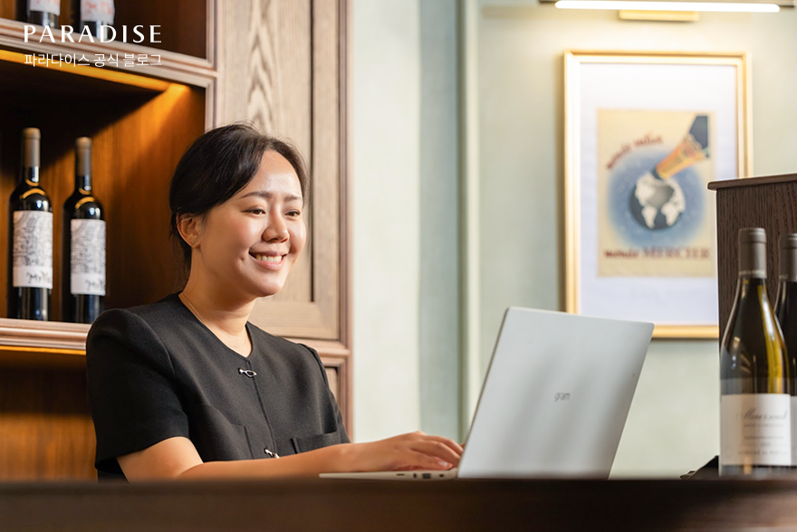 파라다이스 웨이(PARADISE WAY)를 실천하는 파라디안을 만나다. ‘파라人스타’, 일곱 번째 시간입니다. 이번화에서는 고객에게 와인의 가치를 독창적이고 친근하게 전달하는 ‘체험 크리에이터’, 비노파라다이스의 한지희 과장과 이길용 대리를 만나보겠습니다. 고객의 경험을 확장하는 마케팅 전략과 신뢰를 바탕으로 맞춤형 세일즈를 펼치는 두 사람의 이야기를 지금 바로 만나 볼까요?