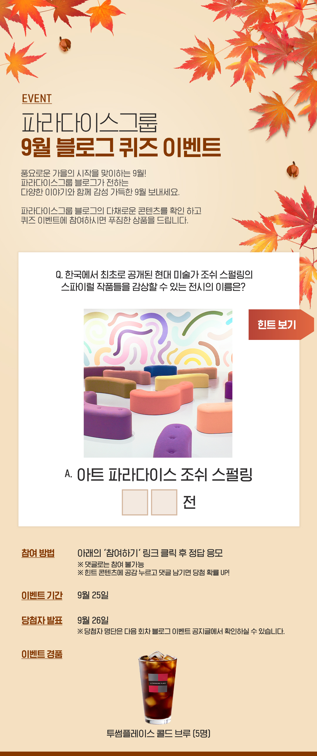 | 파라다이스그룹 9월 블로그 이벤트 (1회차) (17) | 2024.09.23 |