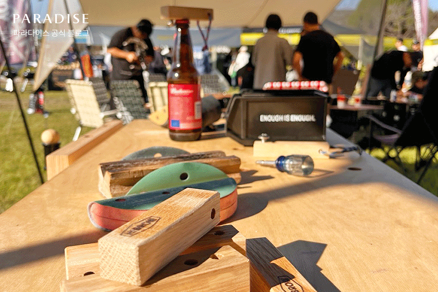 다음으로 향한 곳은 체험존입니다. ‘하이브로우’의 <보틀오프너 만들기 클래스>와 목공 전문가 용형준, 임현주 작가의 <우드카빙 클래스>가 운영되었는데요. 평소 관심 있었던 공예 활동을 직접 체험할 수 있는 기회라 놓치지 않고 참여했습니다. 선생님의 친절한 설명에 따라 집중해서 조립하고 나무를 깎다 보니, 어느새 나만의 제품을 완성할 수 있었습니다.