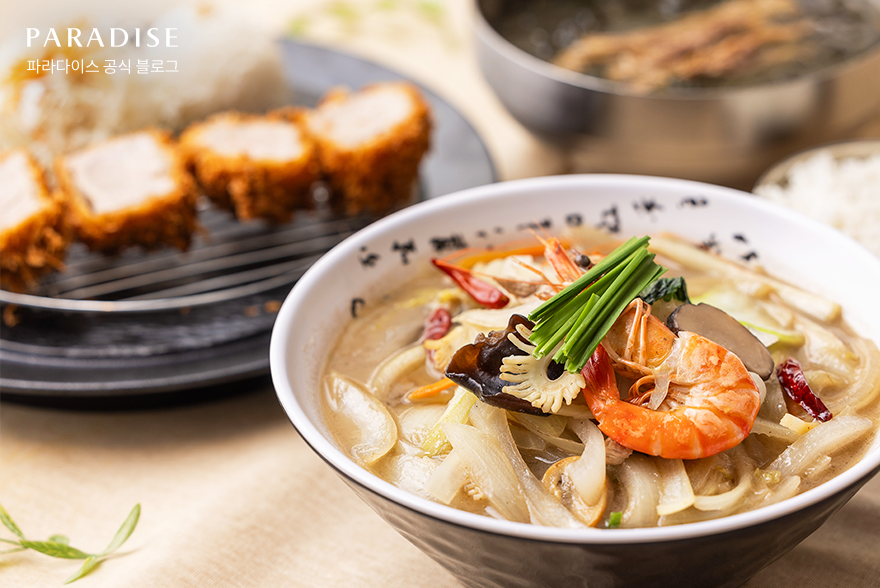 전상호 셰프님: 파라다이스 스파 도고의 대표 메뉴는 기장 미역국, 수제 안심카츠, 그리고 백짬뽕입니다. ‘기장 미역국’은 파라다이스시티와 파라다이스 호텔 부산에서 레시피를 전수받아 제공하고 있어 호텔 셰프의 고품격 요리를 맛볼 수 있는 메뉴입니다. 부산 기장군에서 직접 공수한 미역과 소양깃 머리살로 우려낸 육수를 사용해 몸에 부담을 주지 않으면서도 깊고 풍부한 맛을 느낄 수 있는 점이 차별화 요소입니다. ‘수제 안심카츠’는 신선한 한돈 안심을 사용해 주문 즉시 조리하며 하루 30개 한정으로 제공하고 있습니다. 또한, ‘백짬뽕’은 담백한 닭육수를 베이스로 각종 해산물과 채소를 곁들여 한 그릇 안에 풍성한 맛을 담아내 깊은 맛을 즐길 수 있도록 하였습니다.