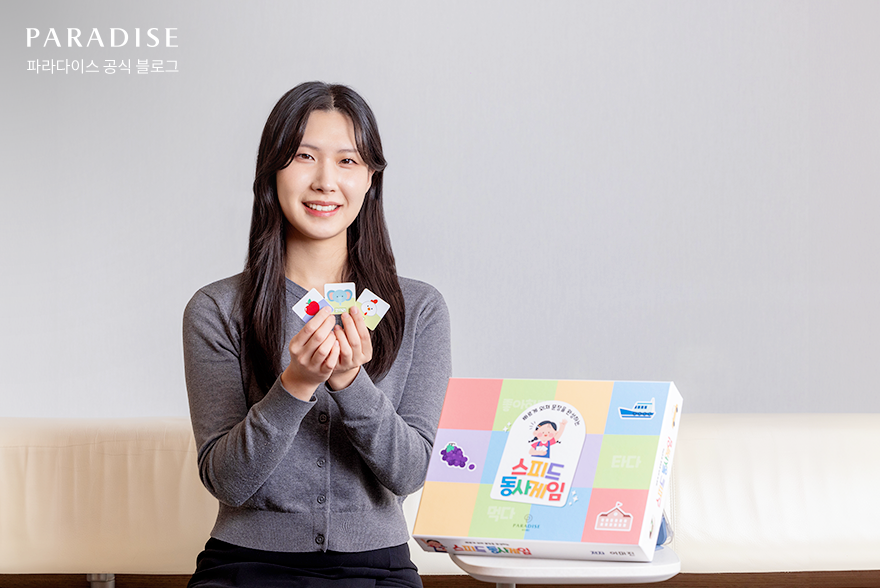 파라다이스 복지재단 아이소리사업부 상품개발팀의 서지우 사원은 장애 아동을 위한 교재와 교구를 개발하고 전문가 육성을 위한 교육 연수를 기획 및 진행하는 업무를 맡고 있는데요. 사업의 궁극적 목표는 장애 아동이 성장하여 우리 사회의 구성원으로 자리 잡도록 하는 것입니다. 그녀는 입사 2년 차로, 직접 제작에 참여한 언어재활 교구가 아동의 언어 발달 개선에 조금이나마 도움이 되고 있다는 것을 발견할 때 큰 보람을 느낀다고 합니다.
