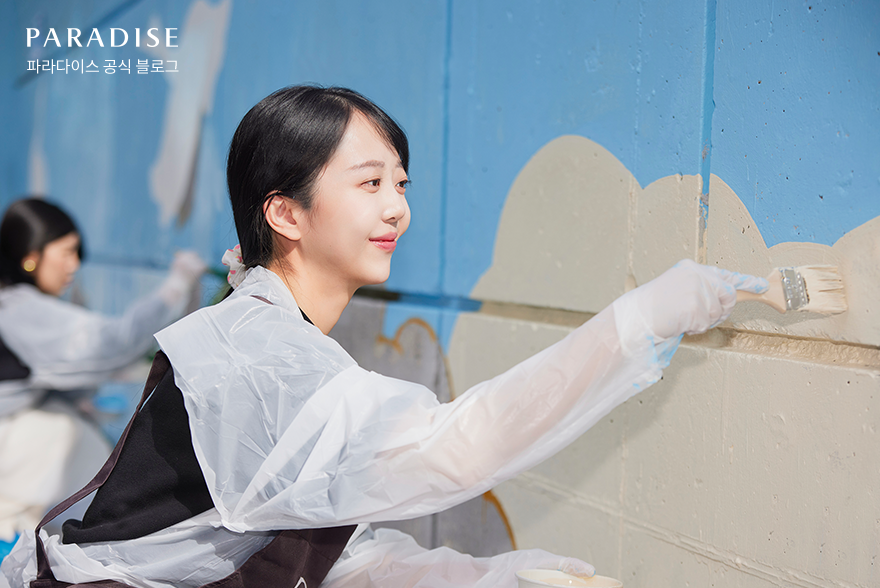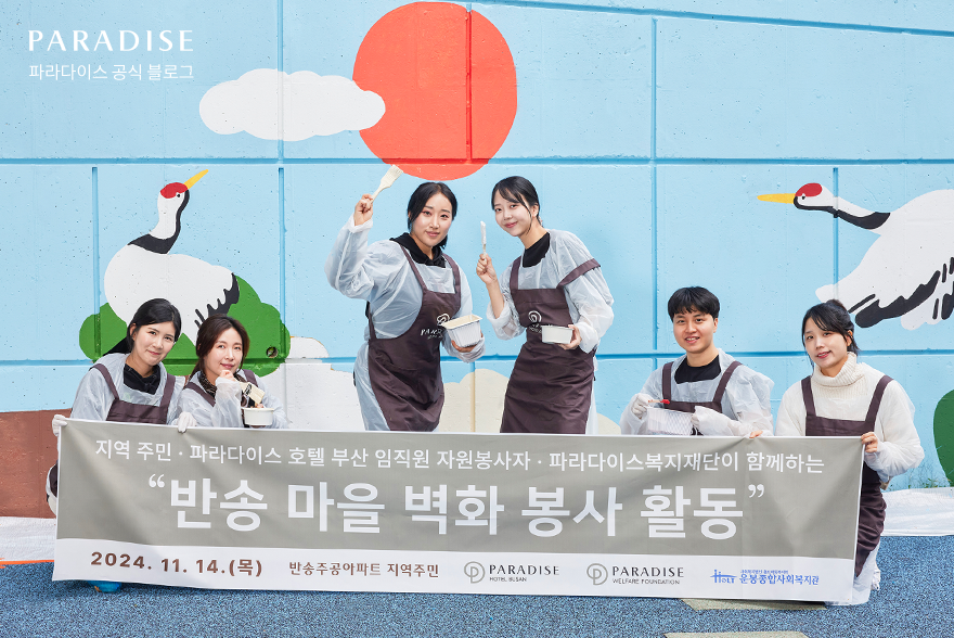지난 11월 14일, 파라다이스 호텔 부산의 임직원 봉사 동아리 ‘파라나누미’가 해운대 반송동 일대에서 주거환경 개선을 위한 벽화 그리기 봉사활동을 펼쳤습니다. 이번 활동은 파라나누미 회원들뿐만 아니라 파라다이스 복지재단과 지역 주민들이 함께 참여해 일손을 더했습니다.
