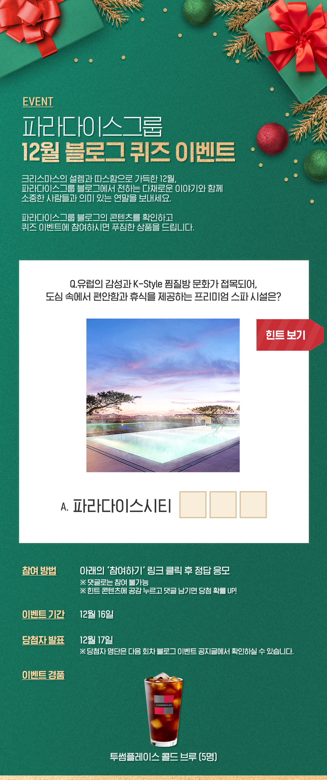 파라다이스그룹 12월 블로그 이벤트